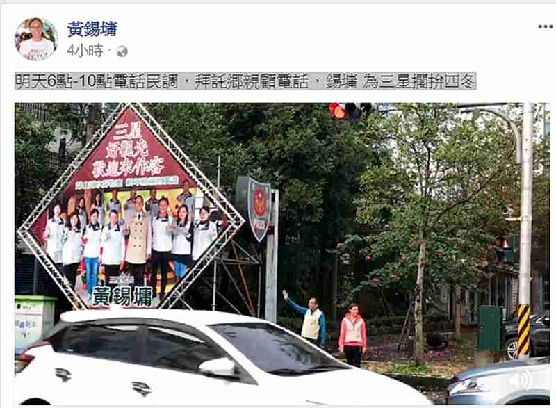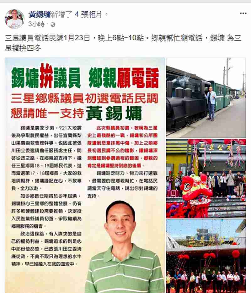 三星鄉縣議員初選電話民調.懇請唯一支持黃錫墉