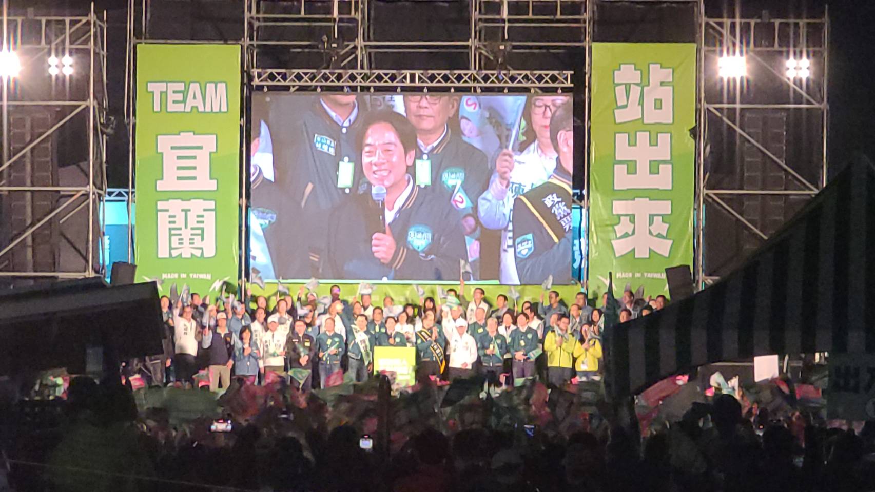 賴清德表示,再過五天就要投票,希望宜蘭延續過去蔣渭水、郭雨新、陳定南、游錫堃、陳菊等民主前輩的精神,要舉頭旗、戰頭陣,用手中神聖的選票向世界宣告,台灣是民主的台灣、是世界的台灣。