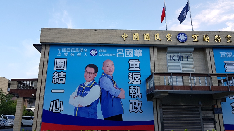 國民黨提名總統候選人韓國瑜的廣告看板,第一波由國民黨立委提名人呂國華同框掛出,凡是到國民黨宜蘭縣黨部的黨員或路過民眾,許多人都看到這波廣告看板。