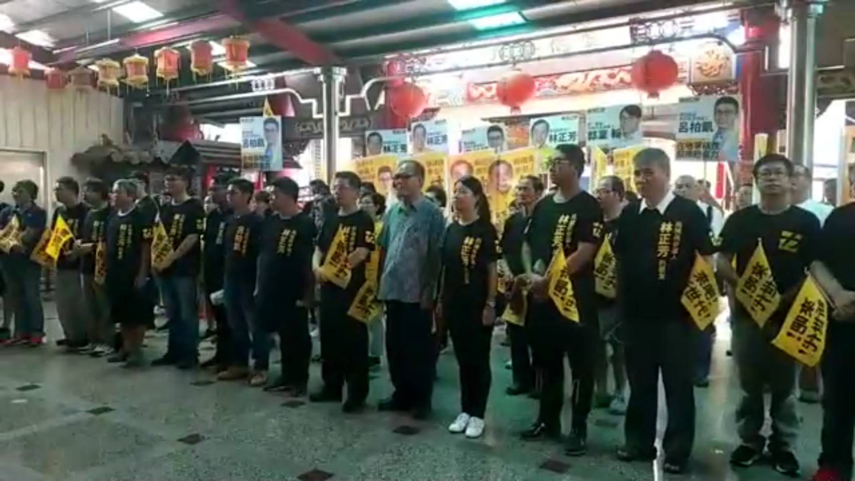 時代力量宜蘭參選人及現場貴賓向文昌帝君行三鞠躬禮,祈求選舉平安順利,心想事成。。(照片/邱淑珍擷取)