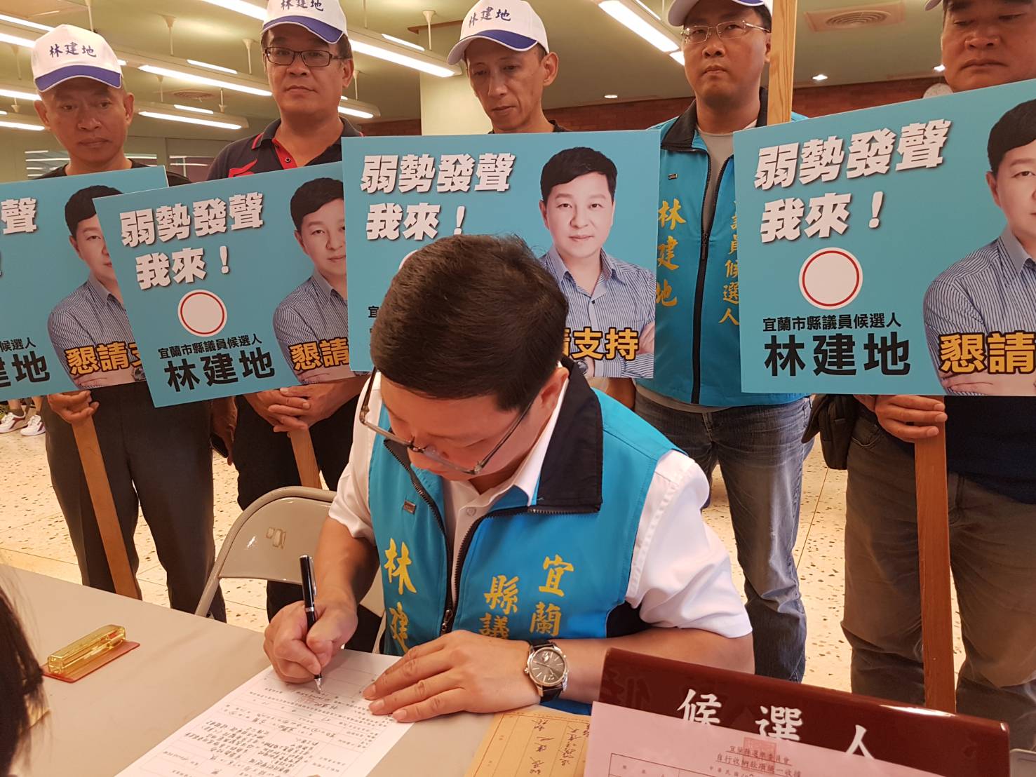隨後林建地就在支持者的陪同下,前往選委會登記參選2018宜蘭縣議員。