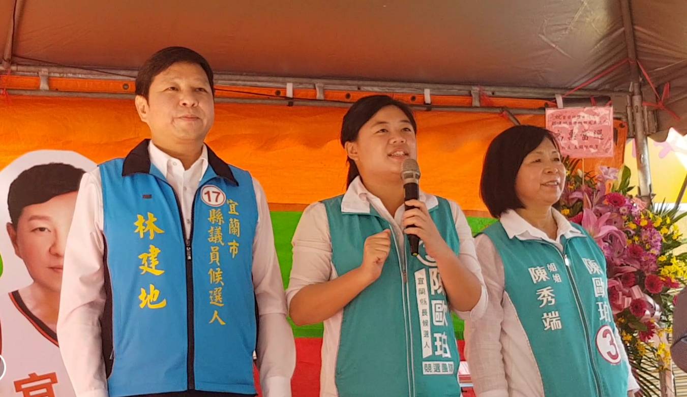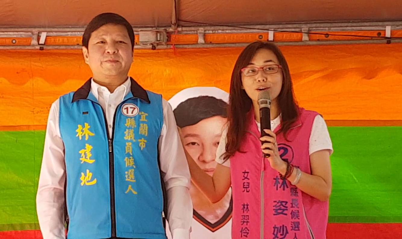 國民黨宜蘭縣長候選人林姿妙女兒林羿伶為林建地站台。(記者邱淑珍/攝影)