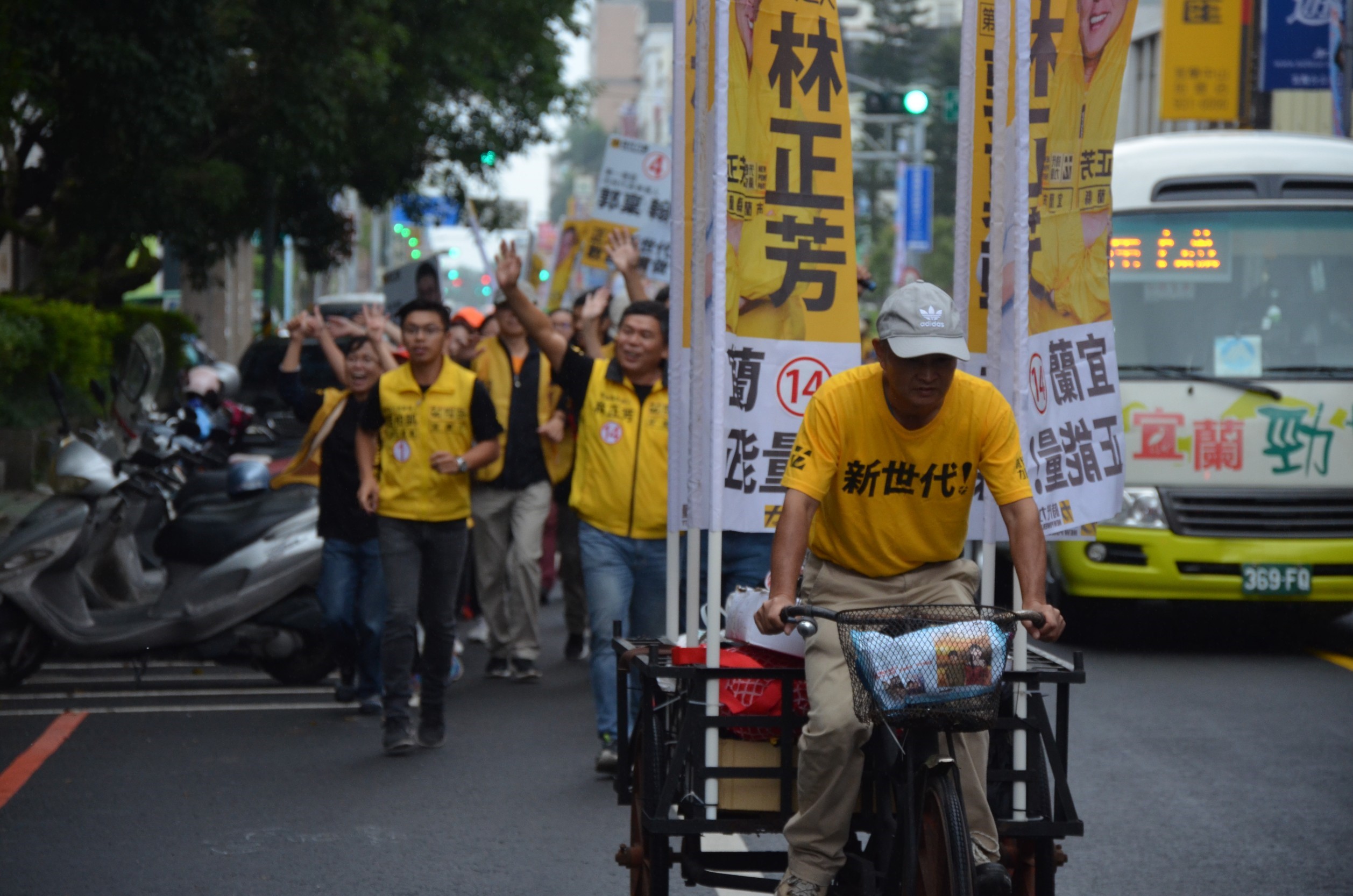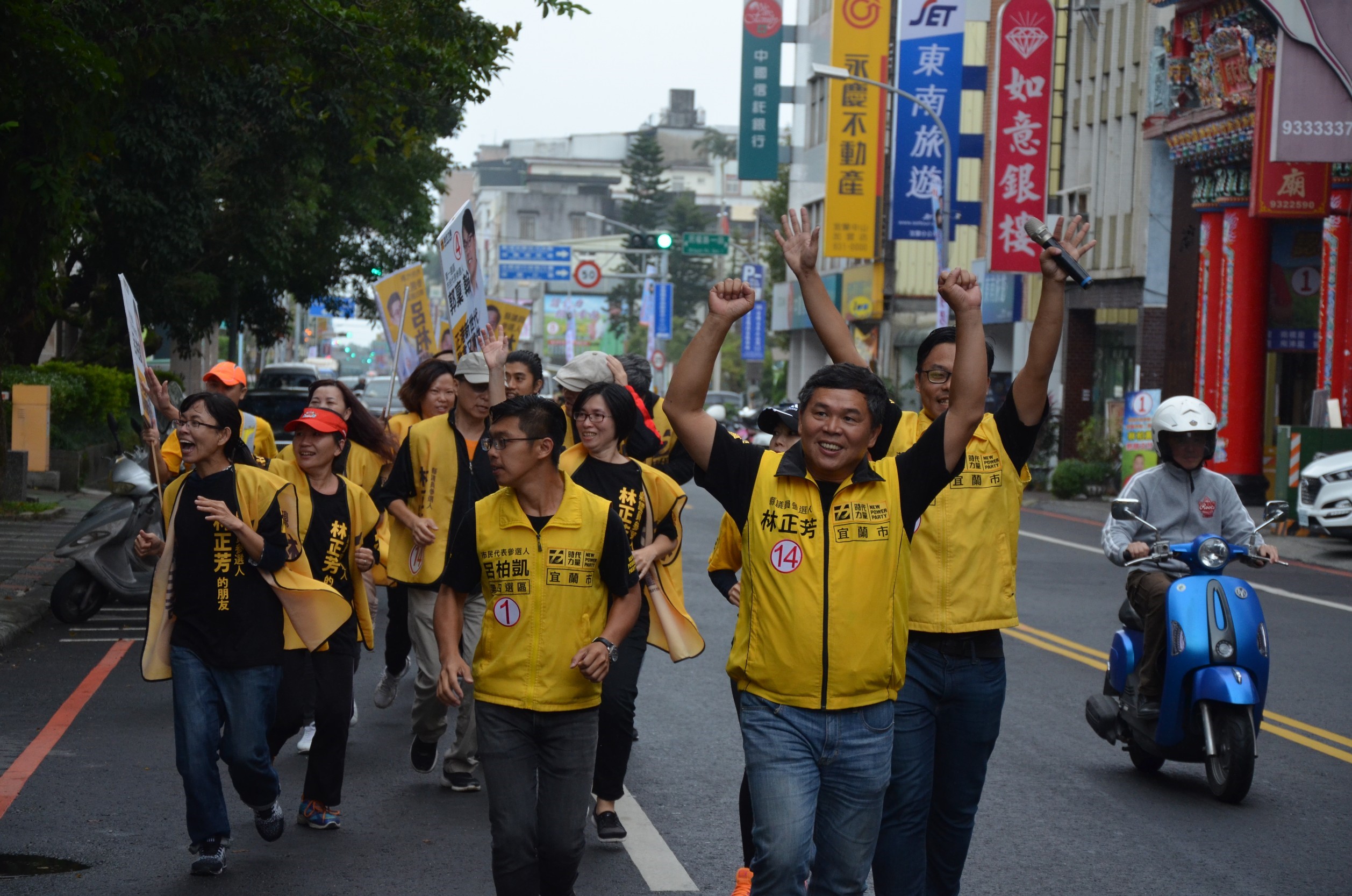 活動最後,全隊一起跑向時代力量宜蘭市聯合競選總部,由候選人帶隊以及支持者跟隨,從人潮眾多的中山路,在路旁的路人也高喊加油揮手致意,看出宜蘭市對於新政治的渴望!