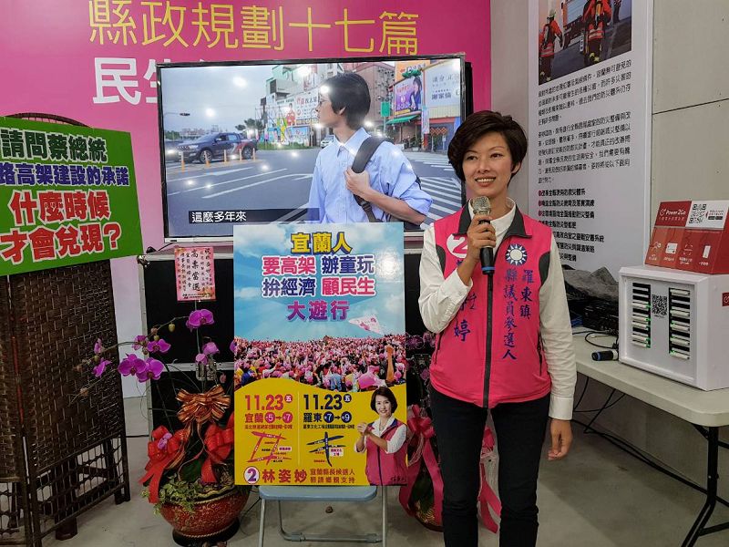 林姿妙競選總部發言人黃琤婷指出,鐵路高架一直是宜蘭人最期盼的交通建設,每到選舉都會被提及,這項攸關人民安全的重大軌道建設,屢屢被政客當成提款機,林姿妙很堅定要爭取相關建設,選前最後1週,蔡英文總統到各地站台輔選強調「縣市換換人做、換黨做,重大建設都會沒有了」,黃琤婷呼籲,總統蔡英文或民進黨不要再用這種執政者的傲慢,恐嚇宜蘭鄉親。