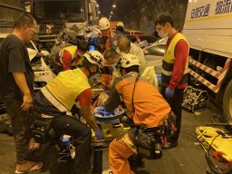 【記者趙奇濤、譚杰/頭城報導】今天(5)上午11:37頭城鎮台二線116k處發生一起交通意外,一輛搭載化學品槽罐車不明原因先是撞擊一輛小貨車後撞向路邊的民宅,幸未傷及住戶,小貨車駕駛及乘客均受傷送醫;槽罐車駕駛受困,經消防救援人員協助解救,至13:34才脫困送醫。事故原因待警方釐清。