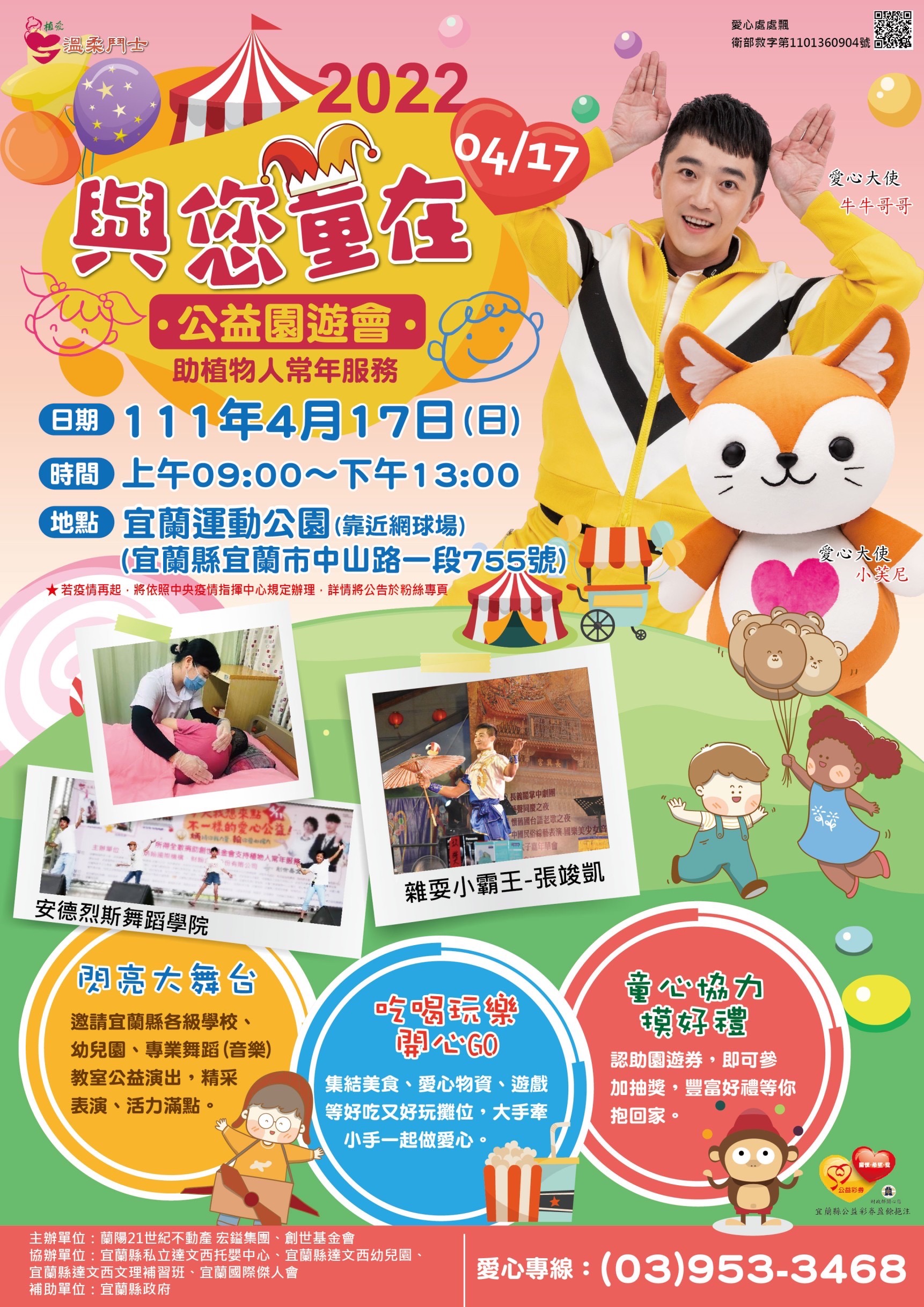 2022蘭陽21第一場公益活動「與您童在-公益園遊會」即將於4/17在宜蘭運動公園舉行當日園遊會各攤販義賣所得將全數捐贈,也歡迎大家一同共襄盛舉,手心向下做公益!