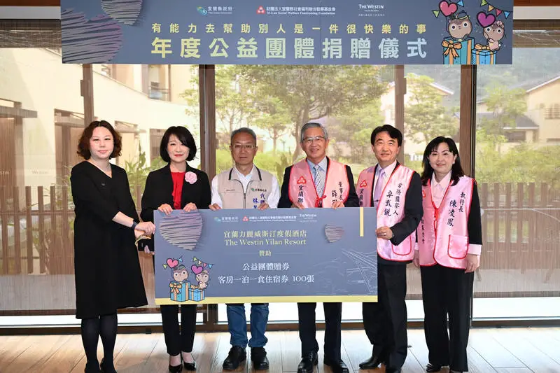 為積極落實企業社會責任,並深化公私協力之效益,宜蘭縣首座以BOT方式開發的國際級飯店「宜蘭力麗威斯汀度假酒店」,於今(19)日舉行愛心捐贈儀式。今年度再度大手筆捐贈100張住宿券予「財團法人宜蘭縣社會福利聯合勸募基金會」,由宜蘭縣代理縣長林茂盛親臨見證,並對企業深耕在地、回饋社會的溫暖舉措表達高度肯定與感謝。