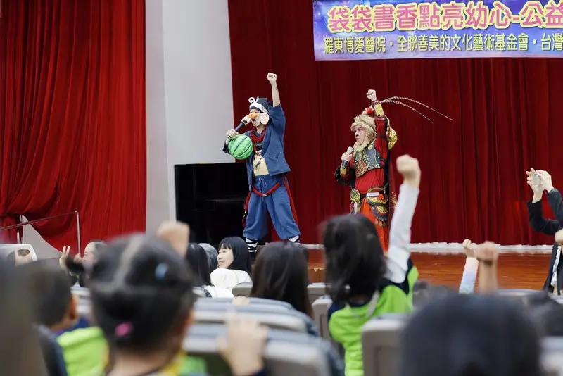 適逢兒童節前夕,羅東博愛醫院與全聯善美的文化藝術基金會於今(2)日共同啟動「袋袋書香」公益贈書計畫,由羅許基金會與全聯善美攜手,將892本精選繪本、119個書袋送往礁溪國小附設幼兒園。活動現場更邀請宜蘭傳藝園區熱門駐園大戲《齊天大聖嬉遊記》中的孫悟空與豬八戒現身校園,與逾百位孩童親切互動,將書中的奇幻世界化為現實,現場氣氛溫馨熱烈。