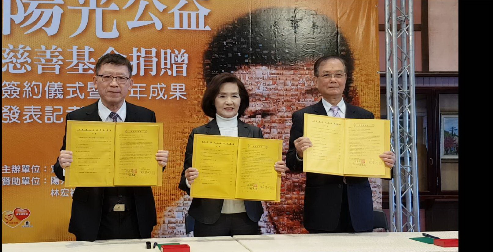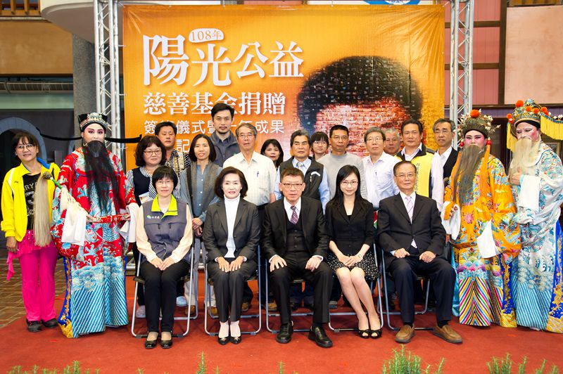 「陽光公益慈善基金會108年捐贈簽約儀式、暨十年成果發表記者會」,今(27)日在縣府大廳舉行,縣長林姿妙感謝捐贈人林宏裕教授多年來熱心益,襄贊宜蘭縣社會福利慈善事業高達1億3,500萬8,440元,今年更持續捐款1,000萬元,補助包括「蘭陽戲劇團-歌仔戲推廣計畫」等11項共33件執行計畫,熱心捐款全數投入公益慈善及教育、文化推廣用途,並在陳定南教育基金會林光義董事長見證下,完成捐贈簽約儀式。