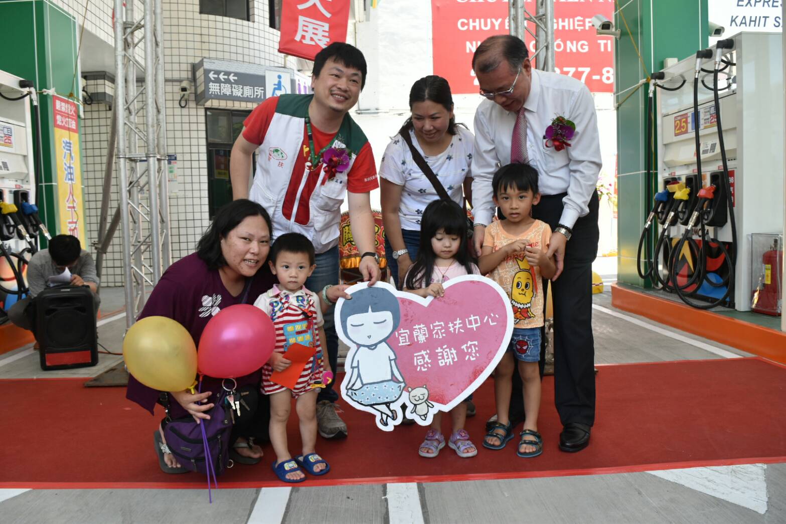 位在宜蘭火車站對面的台亞宜蘭宜興加油站今(5)日正式開幕,為了延續兒童保護,台亞特與宜蘭家扶中心合作舉辦「加油送愛心」公益活動,將加油站的部份營業所得捐贈宜蘭家扶中心,支持各項扶幼工作,為弱勢家庭兒童少年加油打氣,讓愛在蘭陽熱情滿滿。