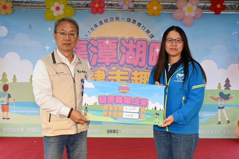 活動現場氣氛熱絡,透過租稅學習單與互動遊戲,讓民眾在湖光山色中輕鬆吸收稅務知識,也進一步了解使用雲端發票的便利與好處。當天共募集3,371張發票,由林茂盛代表轉贈予社團法人宜蘭縣愛加倍關懷協會,展現愛心與公益結合的成果。