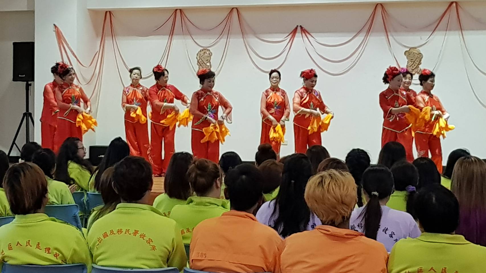 16日下午2時,南陽義學表演團隊由校長林獻忠率領,到移民署宜蘭收容中心(靖廬)演出,賴秀雁和陳樂蒂兩人是從台北趕來,賴秀雁農曆初8還跌傷了,尚未完全復原,獲得不少掌聲。楊耀美老師的「前進非洲」和「青蛇與白蛇」,服裝艷麗、充滿動感。