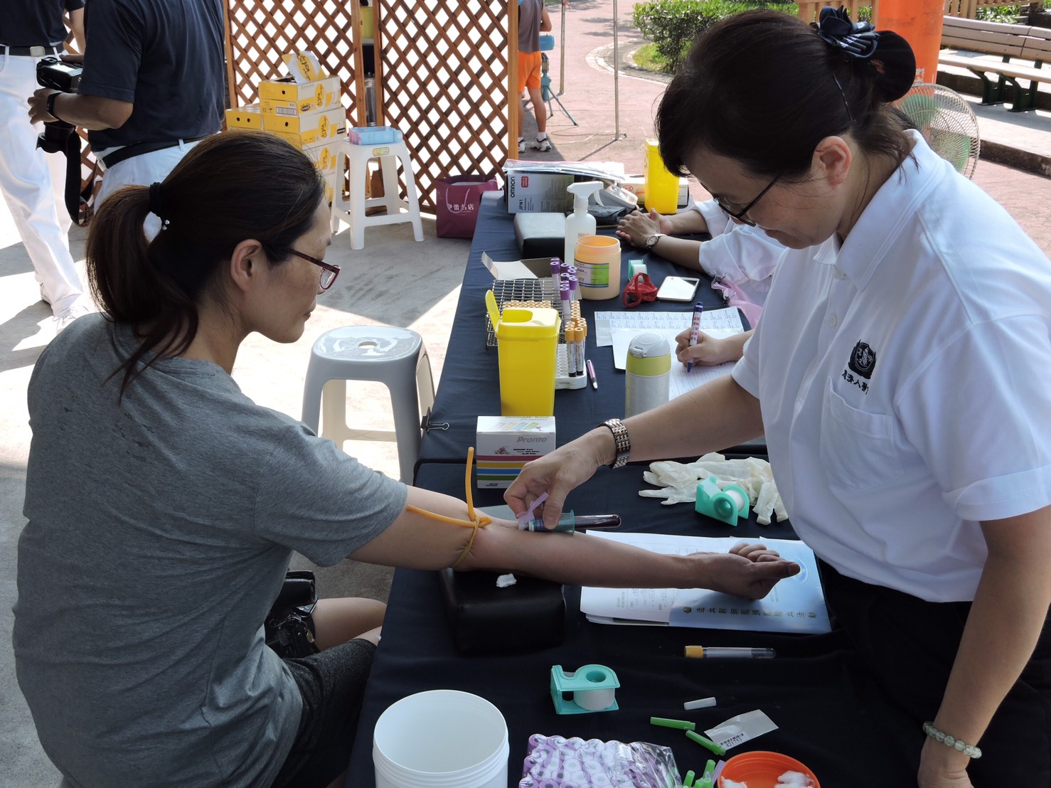 醫療志工特別為參與「救人一命,無損己身」的骨捐民眾抽血建檔