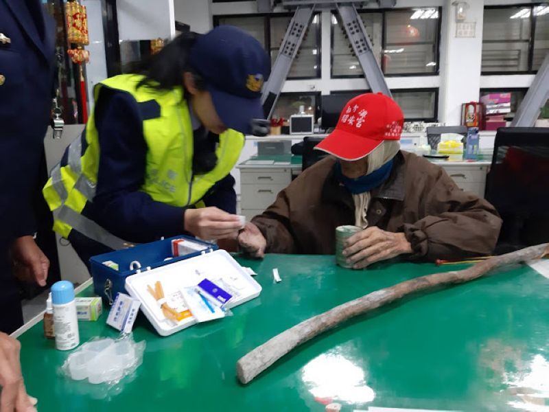 因擔心其安危,將該民載回蘇澳分局南方澳派出所安置照料,並提供熱薑茶飲用及簡單包紮右手之傷口,經警方多方詢問及比對查證該老人提供之不完整地址後,查出其身份後,主動聯繫到其家人,經前來確認後確實是平日獨居且失智、不良於行之祖父,已離家二、三日未歸正到處尋找,其家人對警方積極協助返家,深感敬佩及感謝。