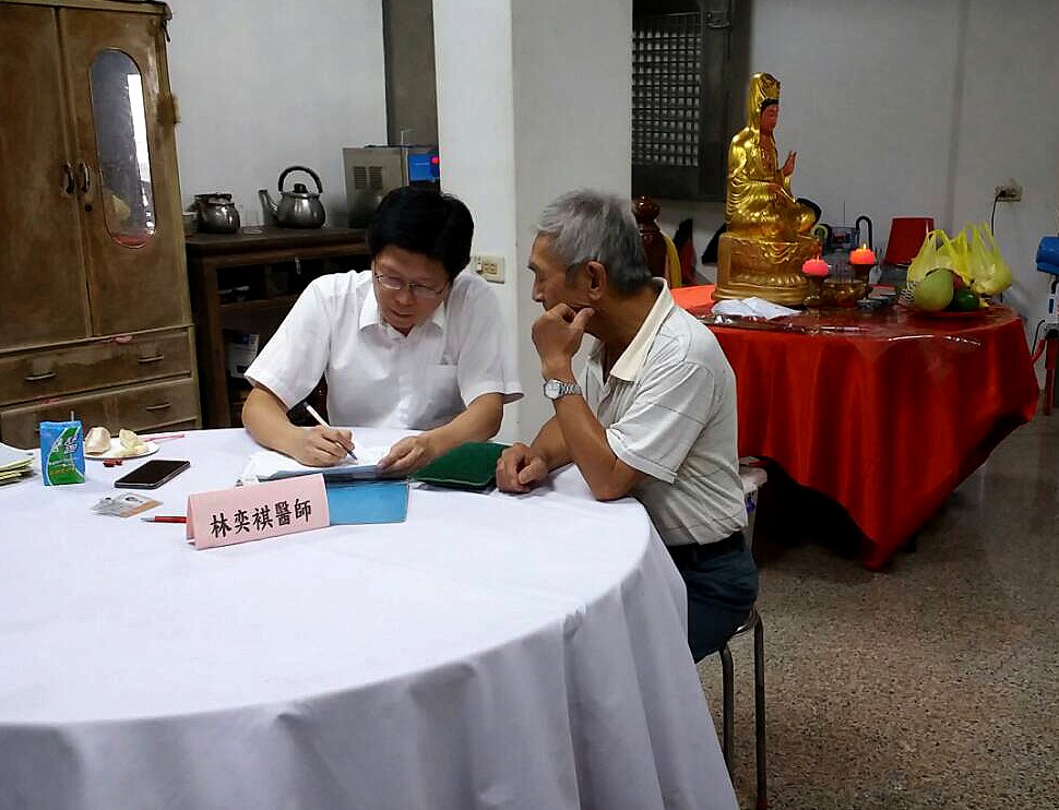 林奕祺醫師細心為民眾看診〈記者王名煒攝〉