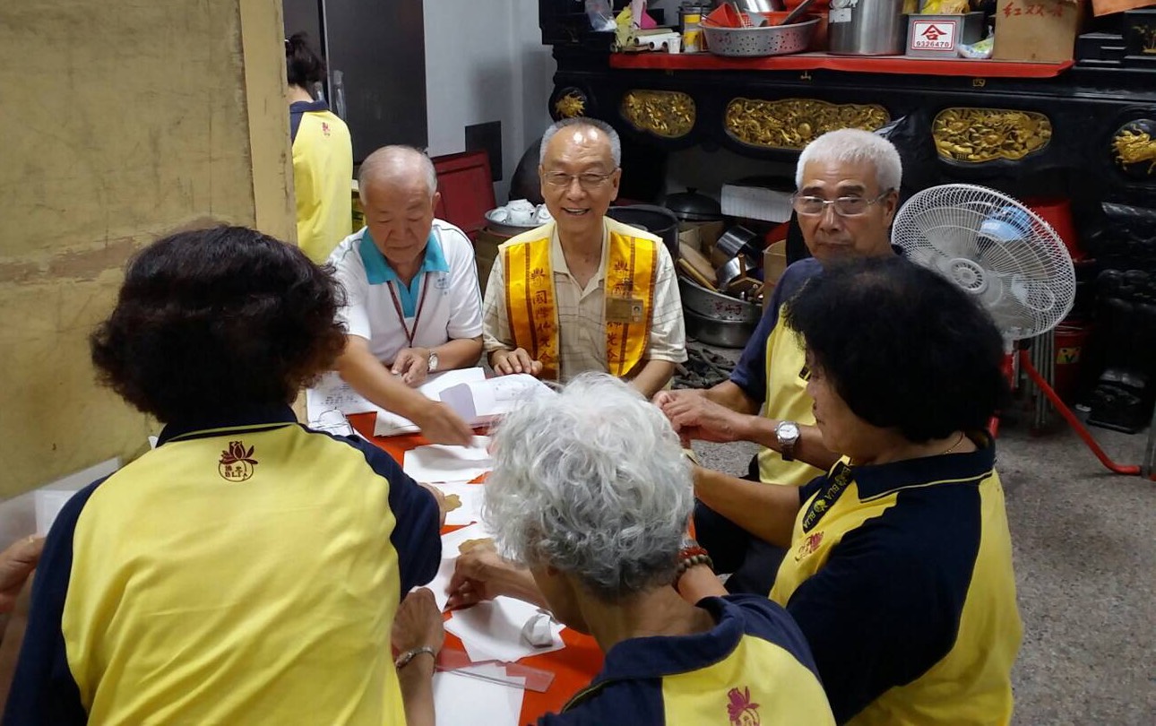 佛光山北區區委員胡世銘與義診團隊依處方簽藥方開藥〈記者王名煒攝〉