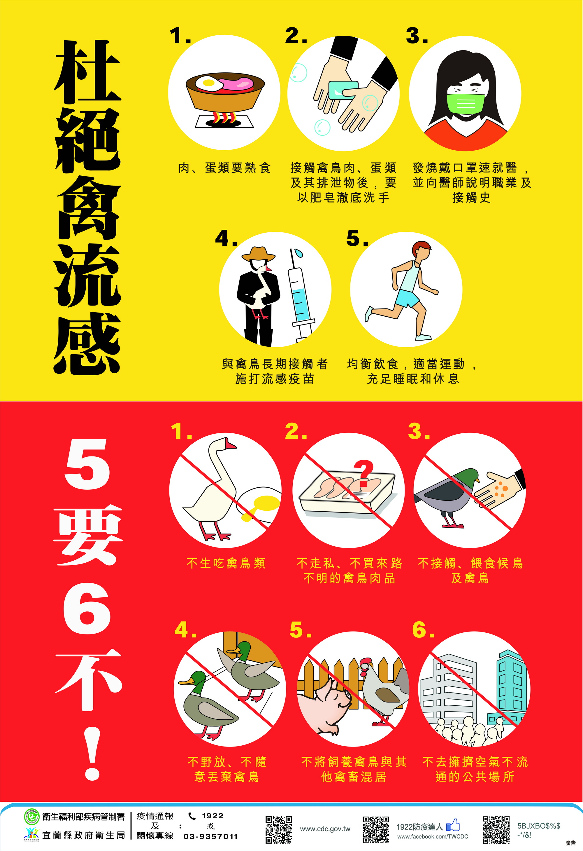 防範禽流感 請落實「5要6不」原則!(照片/宜蘭衛生局提供)