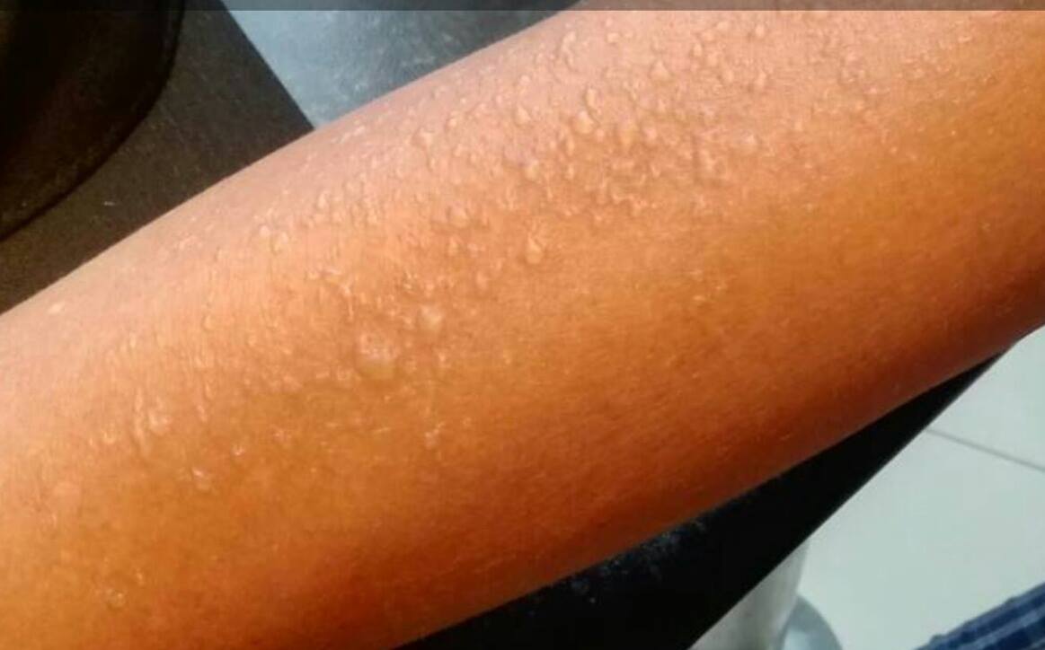 羅東聖母醫院門診日昨出現,自大陸回國的陳姓台商,雙臂佈滿水泡至醫院求診,醫師詢問之下,得知陳姓台商回國,看到台灣的自行車環島設施完善,且在大陸經商時,由於工作繁忙,沒有時間運動,一時興起,瘋上騎鐵馬運動。陳姓患者自冬山河親水公園,沿著濱海公路騎自行車,愜意前行至淡金公路,由於首日穿著運動外套,身體無不適之感。次日由淡水,沿著河濱自行車車道,騎回新店- 碧潭,約莫4~5小時,由於沒有做好防護措施,在秋老虎發威下,隔天雙臂出現紅腫,佈滿水泡,已經造成二度燒傷。