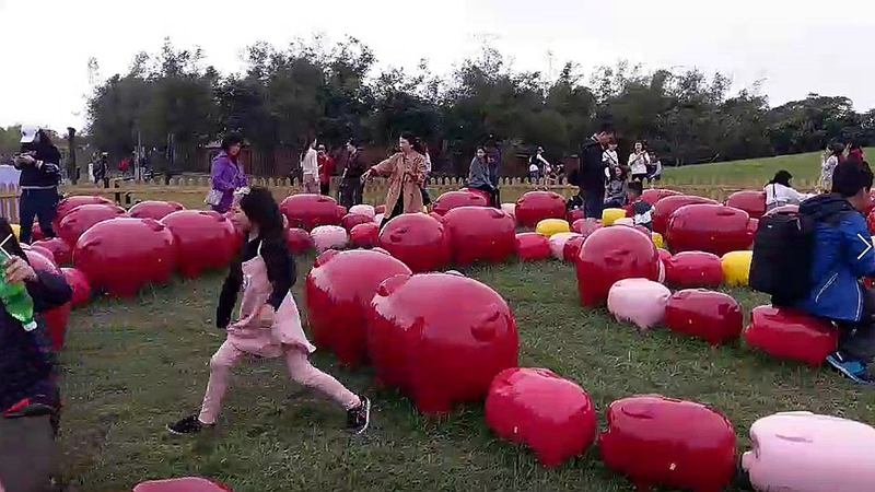 宜蘭傳藝園區在黃舉人宅和魚耀隧道中間的大草皮,全新建置百豬迷宮。靈感來自三國演義諸葛亮八卦陣,「太極生兩儀,兩儀生四象,四象生八卦」傳說諸葛亮將八卦陣用於赤壁之戰,是非常難以攻破的陣法。全聯善美的文化藝術基金會用268頭彩色豬撲滿設下趣味可愛的百豬迷宮,好玩又好拍,非常適合呼朋引伴闔家一起來,豬年挑戰諸葛亮,保證進得來,出得去,豬到成功萬事亨通。